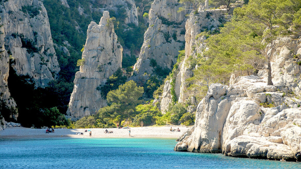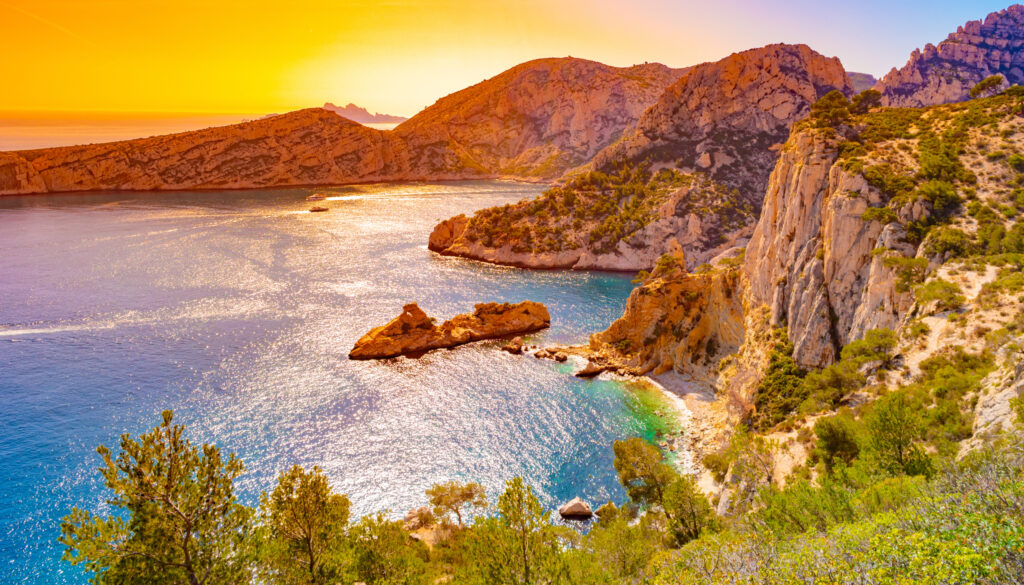 In herrlichem Kontrast heben sich die Felsen der kleinen Mittelmeerjuwelen vom tiefen Meerblau ab. Bei den Calanques, einer Art provenzalischer Fjorde zwischen Marseille und Cassis, handelt es sich um tiefe und steile Klüfte in Kalkfelsen, in die sich das Meerwasser drängt. Man kann hier herrlich wandern, auch eine Bootsfahrt von Marseille oder Cassis aus lohnt sich. Weiter im Süden auf Korsika erstreckt sich auf halben Weg zwischen Ajaccio und Calvi die umwerfende Landschaft der Calanche. Entlang eines gewundenen Pfades über das orangerote Vulkangestein gibt es atemberaubende Panoramen zu bewundern.