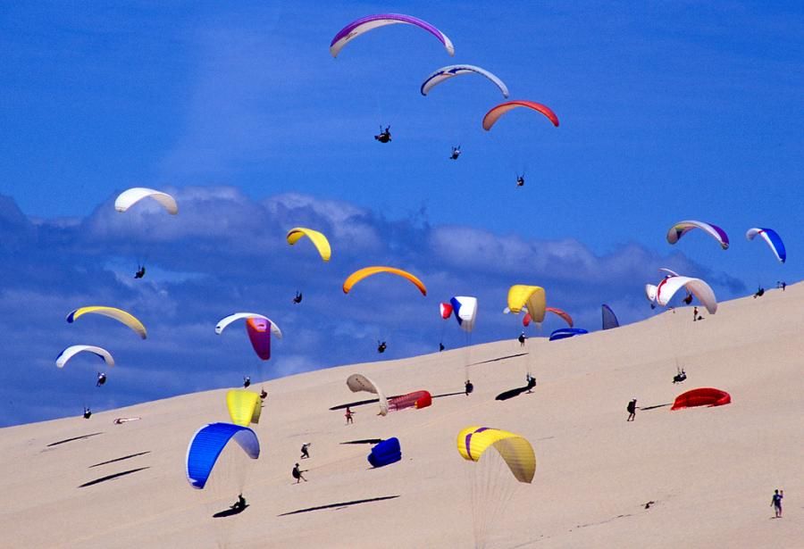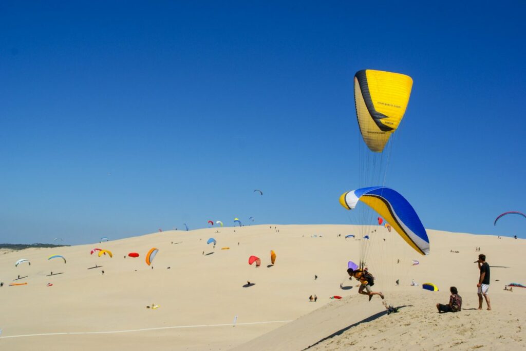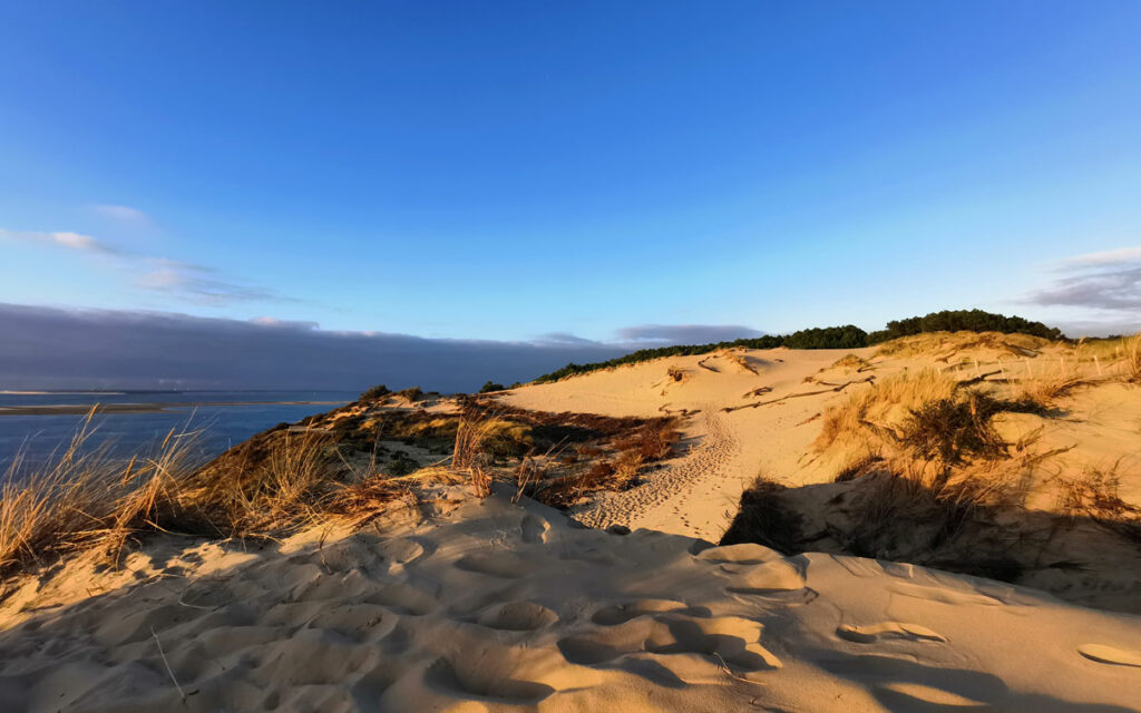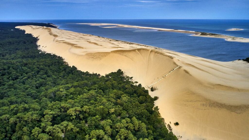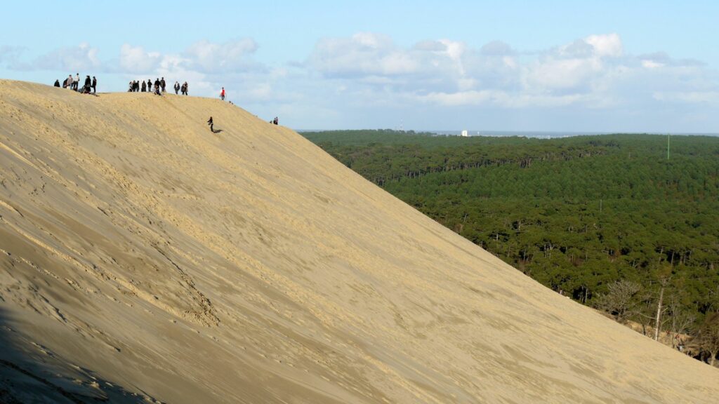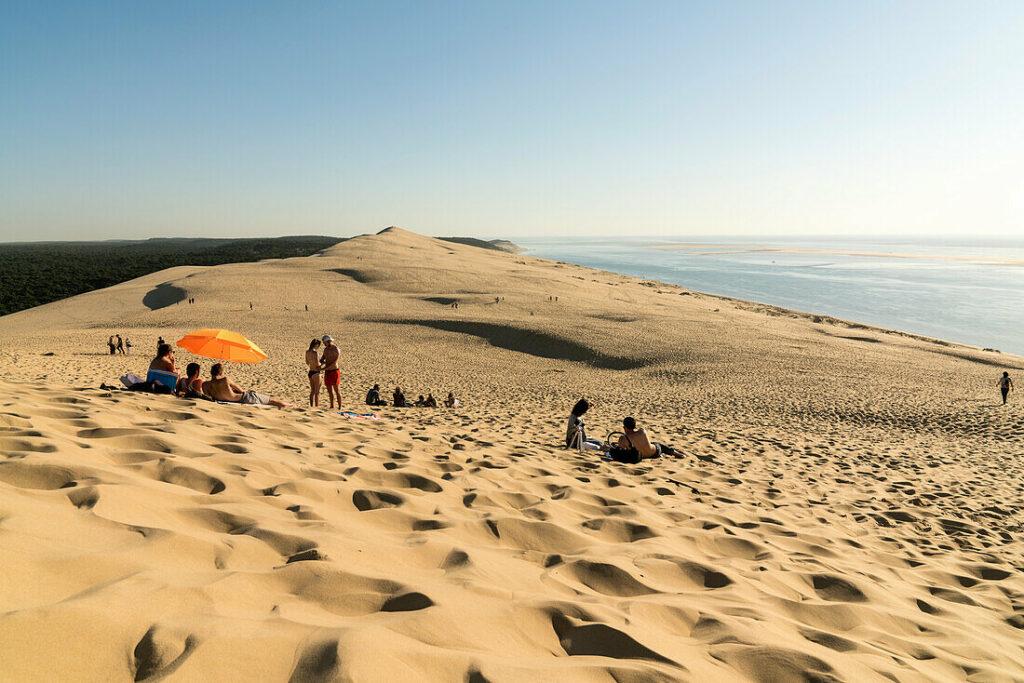 Als hätte sich ein Stück Sahara zwischen Gironde und Landes verirrt. Die Dune du Pilat gehört zu den Grand Sites de France und ist die größte Düne Europas: 114 m hoch (mit jährlichen Schwankungen), 2,7 km lang und 500m breit. Am Eingang des Bassin d´Arcachon gelegen, bietet sie einen schönen Ausblick auf das Meer und den Wald von La Teste-de-Buch. Die 154 Stufen erklimmt man am besten bei Sonnenuntergang, auf der anderen Dünen Seite geht es zum Meer hinab – ein fantastisches Panorama.