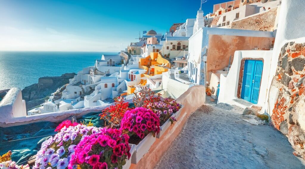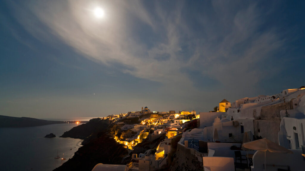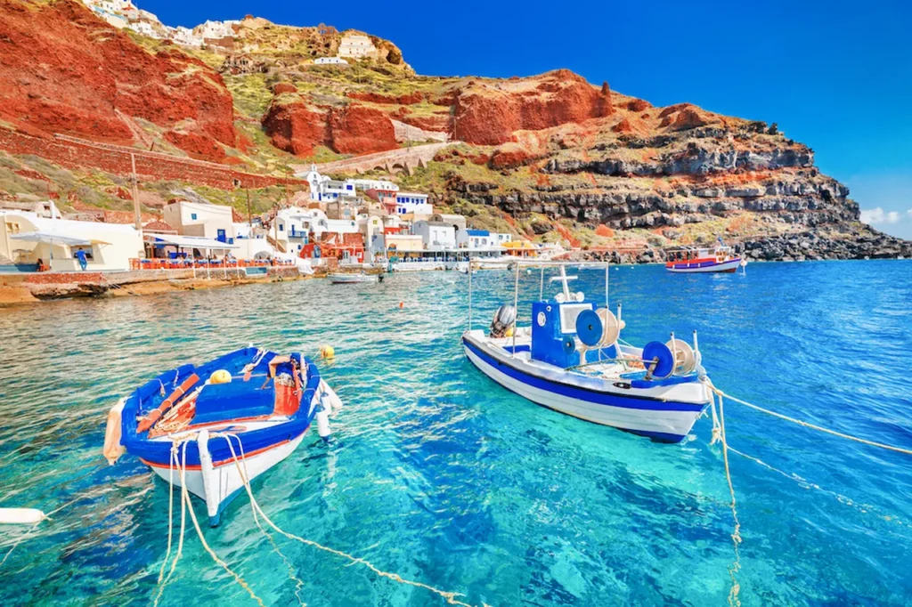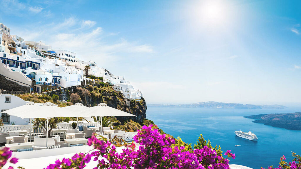 Die zu den Kykladen gehörige Insel ist eines der spektakulärsten Naturphänomene des Mittelmeers, denn sie entsteht aus dem Krater eines untermeerischen Vulkans, dessen Unterwasser Caldera mit 83 KM² als die größte der Welt gilt. Santorini besteht aus einer langen, kreisförmigen Steilküste von 80 bis 120 m Höhe, aufgeschichtet aus schwarzen und roten Aschelagen. Akzentuiert wird die Kulisse durch malerische weiße Dörfer auf dem Kratergipfel. Um das prächtige Naturschauspiel richtig genießen zu können, sollte man außerhalb der Hochsaison hierherkommen.