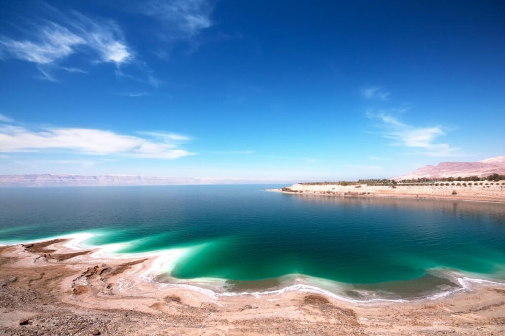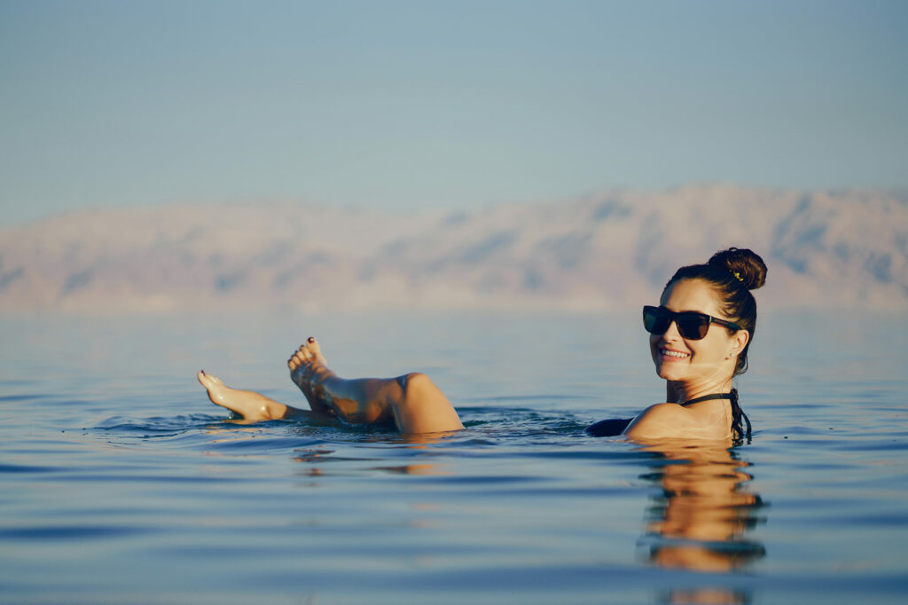 Die einzigartige Stätte liegt zwischen Israel und Jordanien. Das Tote Meer ist eigentlich ein vom Jordan gespeister Salzsee. Den Salzgehalt ist zehnmal so hoch wie der aller anderen Meere. Die Folge: Die Badenden können nicht untergehen. Weder Algen noch Fische können im Toten Meer überleben (daher auch sein Name). Hier liegt gleichzeitig der tiefste Punkt der Erde (-400 m). Wer dort baden will, sollte sich anschließend gut abduschen! Jeder Kontakt des Wassers mit Mund, Nase oder Augen kann gefährlich sein.